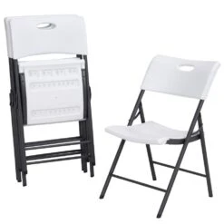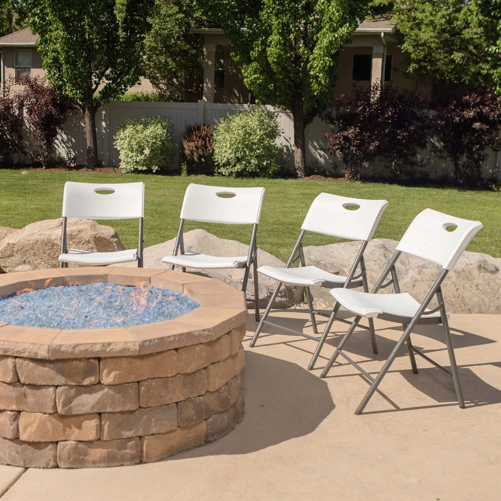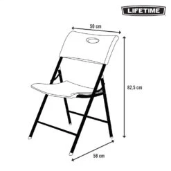 Pack 4 sillas plegables blancas, ligeras y versátiles Lifetime. Base y respaldo contorneados de polietileno de alta densidad con protección UV, resistente al agua y a las manchas. Estructura con tubos de acero con recubrimiento en polvo antióxido. Silla robusta, ultrarresistente y duradera. Medidas: 50 x 58 x 82,5 cm. Perfecta para exterior o interior. Perfil estrecho, fácil transporte, limpieza y almacenaje.