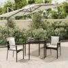 Con un diseño elegante y una estructura de acero duradero, este juego de muebles de comedor es la opción perfecta para tu espacio al aire libre. Este juego de comedor de jardín cuenta con una estructura de acero con recubrimiento en polvo, lo que hace que la mesa y las sillas sean estables y duraderas. Gracias al ratán PE resistente a la intemperie, el conjunto de muebles de exterior es fácil de limpiar. Los cojines son extraíbles y fáciles de limpiar. Además, los cojines gruesos añaden comodidad adicional al asiento. Nota: Para prolongar la vida de tus muebles de exterior, te recomendamos que los protejas con una funda impermeable. Mesa:Color: GrisMaterial: Ratán sintético, acero con recubrimiento en polvo, vidrio templadoDimensiones de la mesa: 90 x 90 x 75 cm (ancho x profundo x altoSilla:Color del ratán sintético: GrisColor de cojín: Gris oscuroMaterial: Ratán sintético, acero con recubrimiento en polvo, tela (100% poliésterDimensiones: 61 x 60 x 88 cm (ancho x profundo x altoRequiere montaje: SíLa entrega contiene:1 x Mesa3 x Silla3 x Cojín