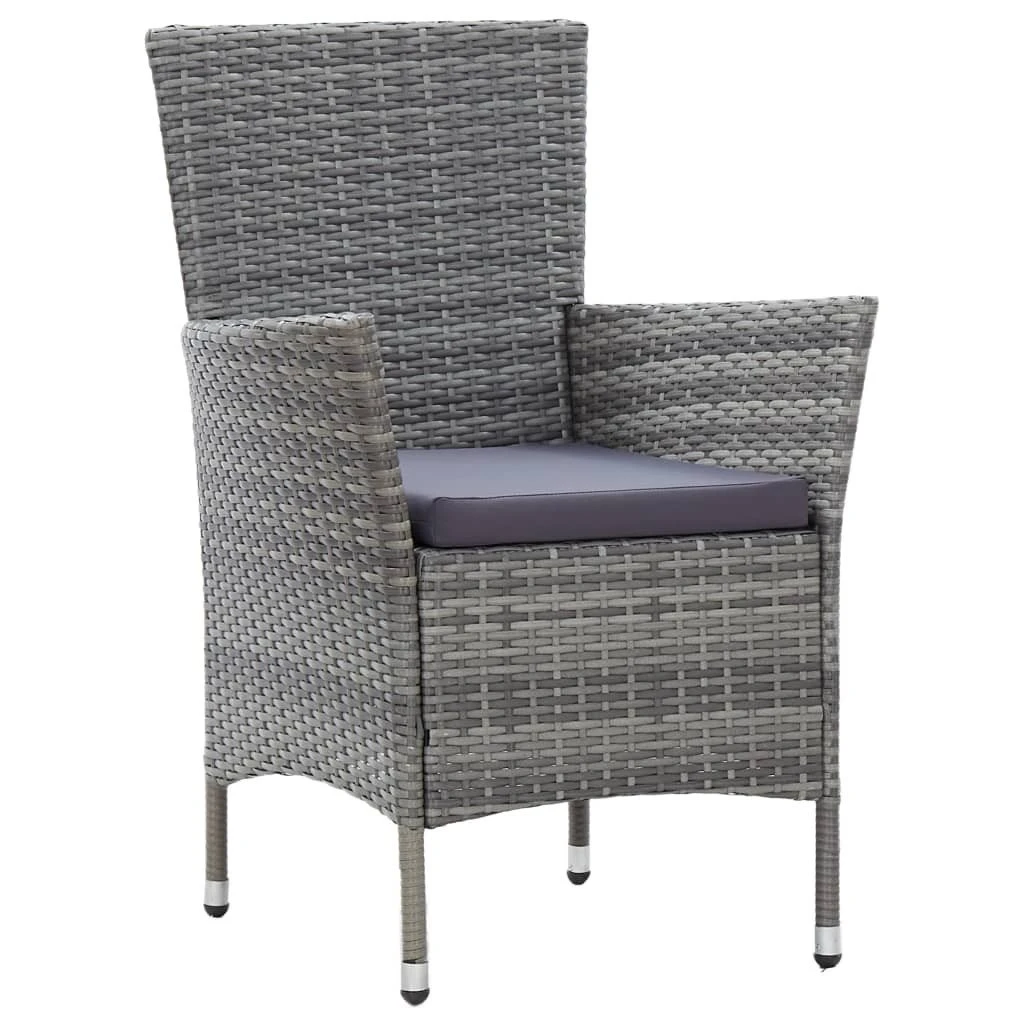 Nuestro confortable juego de comedor para jardín de ratán sintético combina a la perfección estilo y funcionalidad y se convertirá en el foco de atención de tu jardín o patio. Gracias al ratán PE resistente al agua, el juego de comedor es fácil de limpiar, resistente y adecuado para el uso diario en exteriores. La estructura de acero con recubrimiento en polvo también aporta estabilidad y asegura su excelente durabilidad. La entrega incluye una mesa de comedor con superficie de madera maciza de acacia para combinar con nuestras elegantes sillas. Los cojines son extraíbles, están acolchados y rellenos de espuma por lo que brindarán el máximo confort de asiento. Las fundas de los cojines de poliéster apenas requieren mantenimiento y se pueden quitar y lavar fácilmente. Este conjunto de jardín es fácil de montar. Nota: Recomendamos cubrir este mueble cuando llueva, nieve o hiele para que dure el mayor tiempo posible. Color: Gris y gris oscuroMaterial: Ratán PE, madera maciza de acacia, acero con recubrimiento en polvoMaterial de la funda de cojín: 100% poliésterDimensiones de la mesa: 150 x 90 x 75 cm (largo x ancho x altoDimensiones de la silla: 58 x 61 x 88 cm (ancho x profundo x altoAnchura del asiento: 47 cmProfundidad del asiento: 43 cmAltura del asiento desde el suelo (sin cojín: 42 cmAltura del reposabrazos desde el suelo: 65 cmRequiere montaje: SíLa entrega incluye:1 x Mesa6 x Sillas6 x Cojines de asiento