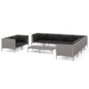 Este juego de comedor para jardín de ratán sintético, con un diseño elegante y único, es una excelente opción para cenar y relajarte en el espacio al aire libre de la casa. Material práctico: Envuelto en ratán PE resistente a la intemperie, este juego de comedor para jardín es fácil de limpiar y resistente, y brinda años de relajación de calidad.Estructura estable y fuerte: Las estructuras de acero de la mesa y las sillas de jardín garantizan su robustez y estabilidad.Sillas flexibles: Puedes tirar de los respaldos hacia abajo y guardar las sillas al aire libre debajo de la mesa, lo que ahorra un valioso espacio de almacenamiento cuando el conjunto no se usa.Experiencia cómoda: El asiento y los cojines traseros gruesos, suaves y rellenos de espuma también añaden comodidad a los asientos. Nota:Para prolongar la vida de tus muebles de exterior, te recomendamos que los protejas con una funda impermeable. Mesa:Color: NegroMaterial: Ratán PE, acero con recubrimiento en polvo, vidrio templadoDimensiones: 443 x 107 x 74 cm (largo x ancho x altoGrosor de la superficie de la mesa de madera: 5 mmSilla:Color de ratán sintético: NegroColor de cojines: Blanco cremaMaterial: Ratán PE, acero con recubrimiento en polvo, tela (100% poliésterDimensiones: 52 x 56 x 85 cm (ancho x profundo x altoDimensiones de asiento: 46 x 41 cm (ancho x profundoAltura del asiento desde el suelo (sin cojín: 45 cmAltura del reposabrazos desde el suelo: 64 cmDimensiones del cojín del asiento/respaldo: 46 x 41 x 5 cm (ancho x profundo x grosorReposapiés:Color de ratán sintético: NegroColor de cojines: Blanco cremaMaterial: Ratán PE, acero con recubrimiento en polvo, tela (100% poliésterDimensiones: 40,5 x 40,5 x 35 cm (ancho x profundo x altoGrosor del cojín: 5 cmRequiere montaje: SíLa entrega incluye:1 x Mesa16 x Sillas4 x Reposapiés20 x Cojines de asiento16 x Cojines de respaldo