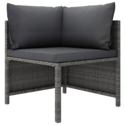 Crea un área de descanso relajante con este juego de muebles de jardín de ratán sintético. Este cómodo set de muebles de jardín, con una estructura de acero con recubrimiento en polvo recubierto con ratán PE, es robusto y fácil de limpiar. Los cojines bien acolchados añaden un plus de comodidad en tu tiempo de ocio. Las fundas de los cojines son extraíbles y lavables gracias a las cremalleras. Además, el reposapiés también sirve de mesita de centro para dejar lo que necesites. Este set de muebles de jardín es fácil de mover debido a su construcción ligera. Gracias al diseño modular, puedes colocar el conjunto en la disposición que prefieras. Nota importante: Recomendamos cubrir el set de salón en condiciones de lluvia, nieve y heladas para que sea más duradero. Color: GrisColor del cojín: Gris antracitaMaterial: Ratán PE (polietileno, acero con recubrimiento en polvo Material del cojín: Tela (100% poliésterMaterial de relleno del cojín del asiento: EspumaMaterial de relleno del cojín de respaldo: Fibra de algodónGrosor del cojín del asiento: 5 cmGrosor de cojín de respaldo: 15 cmSofá de esquina:Dimensiones: 60 x 60 x 60 cm (ancho x profundo x altoAnchura del asiento: 57 cmProfundidad del asiento: 57 cmAltura del asiento desde el suelo: 32 cmSofá central:Dimensiones: 54 x 60 x 60 cm (ancho x profundo x altoProfundidad del asiento: 57 cmAltura del asiento desde el suelo: 32 cmReposapiés:Dimensiones: 60 x 60 x 32 cm (ancho x profundo x altoRequiere montaje: SíLa entrega incluye:5 x Sofá de esquina3 x Sofás centrales2 x Taburetes/reposapiés10 x Cojines de asiento13 x Cojines de respaldo