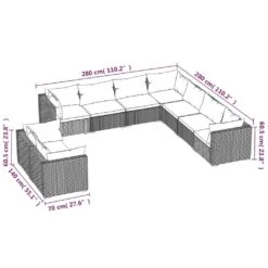 ¡Relájate y disfruta de tu tiempo libre con este moderno juego de muebles de jardín de ratán sintético! Está destinado a ser una excelente opción para que tomes un respiro de tu agitada vida. Estructura robusta y ligera: Este conjunto de muebles de patio cuenta con una robusta estructura de acero con recubrimiento en polvo y patas de plástico cromado, que es muy duradero.Material resistente al agua: Hecho de material resistente al agua, el juego de muebles de jardín puede soportar la humedad y la lluvia. También se puede limpiar fácilmente con un paño húmedo cuando sea necesario.Diseño modular: El diseño modular permite colocar el conjunto en cualquier disposición o combinarlos con otros segmentos modulares para satisfacer tus necesidades.Cojines cómodos: Los cojines gruesamente acolchados y extraíbles proporcionan una comodidad óptima para tu sesión al aire libre. Nota:Para prolongar la vida de tus muebles de exterior, te recomendamos que los protejas con una funda impermeable. Color: NegroColor del cojín/almohada: Azul aguaMaterial del sofá: Ratán PE, acero con recubrimiento en polvo, plásticoMaterial del cojín/almohadón: Tela (100% poliésterSofá esquinero:Dimensiones: 70 x 70 x 60,5 cm (largo x ancho x altoProfundidad del asiento: 63 cmAltura del asiento desde el suelo: 30 cmDimensiones del cojín de asiento: 63 x 63 x 3 cm (largo x ancho x grosorDimensiones de la almohada del respaldo: 63/53 x 40,5 cm (largo x anchoSofá central:Dimensiones: 70 x 70 x 60,5 cm (largo x ancho x altoProfundidad del asiento: 63 cmAltura del asiento desde el suelo: 30 cmDimensiones del cojín de asiento: 70 x 63 x 3 cm (largo x ancho x grosorDimensiones del almohadón de respaldo: 70 x 40,5 cm (largo x anchoRequiere montaje: SíLa entrega contiene:5 x Sofá esquinero2 x Sofás centrales9 x Cojín de asiento13 x Cojines de respaldo