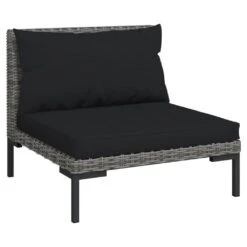 ¡Relájate y disfruta del espacio al aire libre de tu casa con este clásico juego de muebles para jardín! Estructura robusta: Con una estructura de acero con recubrimiento en polvo, el juego de muebles de patio es robusto y duradero. Construcción ligera: La construcción ligera hace que el juego de sofás sea fácil de mover.Material de primera calidad: Hecho de ratán PE semicircular, este juego de muebles para exteriores es resistente a la intemperie y al agua, fácil de limpiar y mantener. Cómodos cojines y almohadas: Los cojines y las almohadas acolchados gruesos y extraíbles brindan una comodidad óptima para que te sientes al aire libre. Nota:Recomendamos cubrir el conjunto de jardín en caso de lluvia, nieve y heladas para que dure más tiempo. Además, te recomendamos limpiarlo regularmente para alargar la vida de los muebles de exterior. No lo dejes al aire libre sin protección innecesariamente.Limpieza: Usa una solución de jabón suaveAlmacenamiento: Si es posible, guárdala en un lugar fresco y seco en el interior. Si el producto se almacena en el exterior, protégelo con una cubierta impermeable. Limpia y seca el exceso de agua o nieve de las superficies planas después de una lluvia o nevada. Permite la ventilación para evitar daños relacionados con la humedad. Color del ratán: Gris oscuroColor del cojín: NegroMaterial: Acero con recubrimiento en polvo, ratán PE semicircular, tablero de PC, tela (100 % poliésterMaterial de relleno: EspumaSofá central:Dimensiones: 70 x 70 x 61 cm (ancho x profundo x altoDimensiones de asiento: 70 x 60 cm (ancho x profundoAltura del asiento desde el suelo: 21 cmDimensiones del cojín del asiento: 68 x 58 cm (ancho x profundoDimensiones del cojín del respaldo: 68 x 37 cm (ancho x altoSofá esquinero:Dimensiones: 70 x 70 x 61 cm (ancho x profundo x altoDimensiones del asiento: 60 x 60 cm (ancho x profundoAltura del asiento desde el suelo: 21 cmDimensiones del cojín del asiento: 58 x 58 cm (ancho x profundoDimensiones del cojín del respaldo: 50/59 x 37 cm (ancho x altoMesa de centro:Dimensiones: 120 x 55 x 21 cm (largo x ancho x altoRequiere montaje: SíLa entrega contiene:2 x Sofás centrales3 x Sofá esquinero1 x Mesa de centro5 x Cojines de asiento8 x Cojines de respaldo