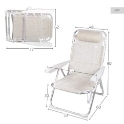 - Fácil de almacenar y transportar: su estructura plegable, las asas de transporte y su peso ligero la convierten en una silla de playa muy fácil de transportar y almacenar