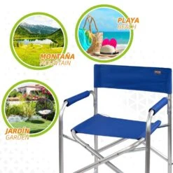 - Materiales: asiento y respaldo fabricados con tela Oxford 600D y estructura de aluminio