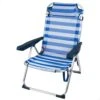 Silla alta con posición fija plegable Aktive Beach. Práctico asiento con los reposabrazos ergonómicos para disfrutar del aire libre. Es plegable y se transforma en un cómodo bolso gracias a su asa incorporada. Medidas: 44 x 44 x 85,5 cm. Fabricada en aluminio y textileno, resistentes e impermeables con diseño a rayas verticales en tonos azul mediterráneo. La altura del asiento es de 39 cm y la distancia entre los reposabrazos de 53 cm. Ideal para playa, piscina o camping.