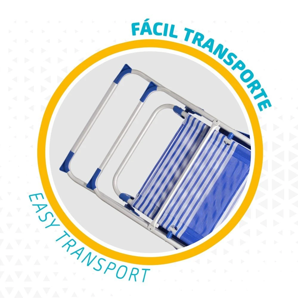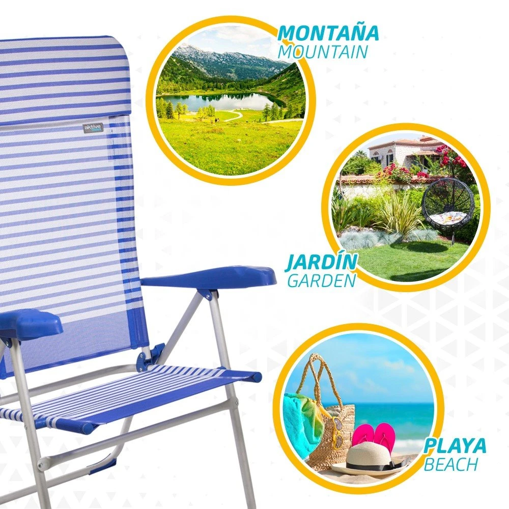 - Silla alta plegable Aktive Beach, medidas 47x61x118 cm, fabricada en aluminio y textileno resistentes a la intemperie, impermeables y lavables