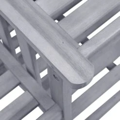 Las sillas de jardín de madera rústica con mesita serán un aporte verdaderamente fácil de usar y llamativo para tu jardín o patio. La mesa y las sillas están hechas de madera maciza de acacia, una madera dura con vetas densas que las hace extremadamente duraderas y resistentes. La robusta superficie de la mesa y el estante inferior son ideales para guardar tus tazas, libros y otros artículos pequeños. Y los respaldos y apoyabrazos de las sillas garantizan una experiencia de descanso relajante. Además, los muebles se limpian fácilmente con un paño húmedo. Nota: Para prolongar la vida útil de los muebles de exterior, te recomendamos que los limpies con regularidad y no los dejes al aire libre sin protección innecesariamente.Limpieza: Usa una solución de jabón suave.Almacenamiento: Si es posible, guarda el producto en un lugar fresco y seco en el interior. Si el producto se almacena al aire libre, protégelo con una funda impermeable. Limpia y seca el exceso de agua o nieve de las superficies planas después de una lluvia o nevada. Permite la ventilación para evitar daños relacionados con la humedad. Material: Madera maciza de acacia con acabado lavado grisDimensiones: 159 x 61 x 92 cm (largo x ancho x altoProfundidad del asiento: 49 cmAltura del reposabrazos: 61 cmAltura del asiento desde el suelo: 44 cmAltura de la mesa: 59 cmDiseño de listones distintivo 2 sillas y una mesa en diseño de una piezaRequiere montaje: Sí